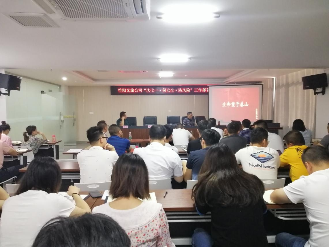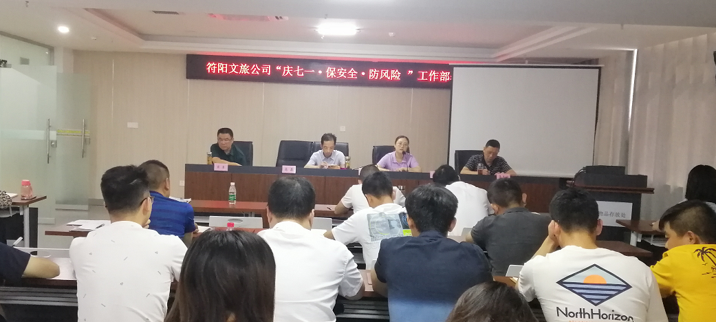 2021年6月23日,符陽(yáng)文旅公司召開“ 慶七一·保安全·防風(fēng)險(xiǎn)”工作部署會(huì),阜陽(yáng)集團(tuán)副總胡天華參加會(huì)議,公司總經(jīng)理吳平主持會(huì)議,公司全體員工及龍掛山項(xiàng)目 參建單位項(xiàng)目負(fù)責(zé)人、安全管理人員參加 。