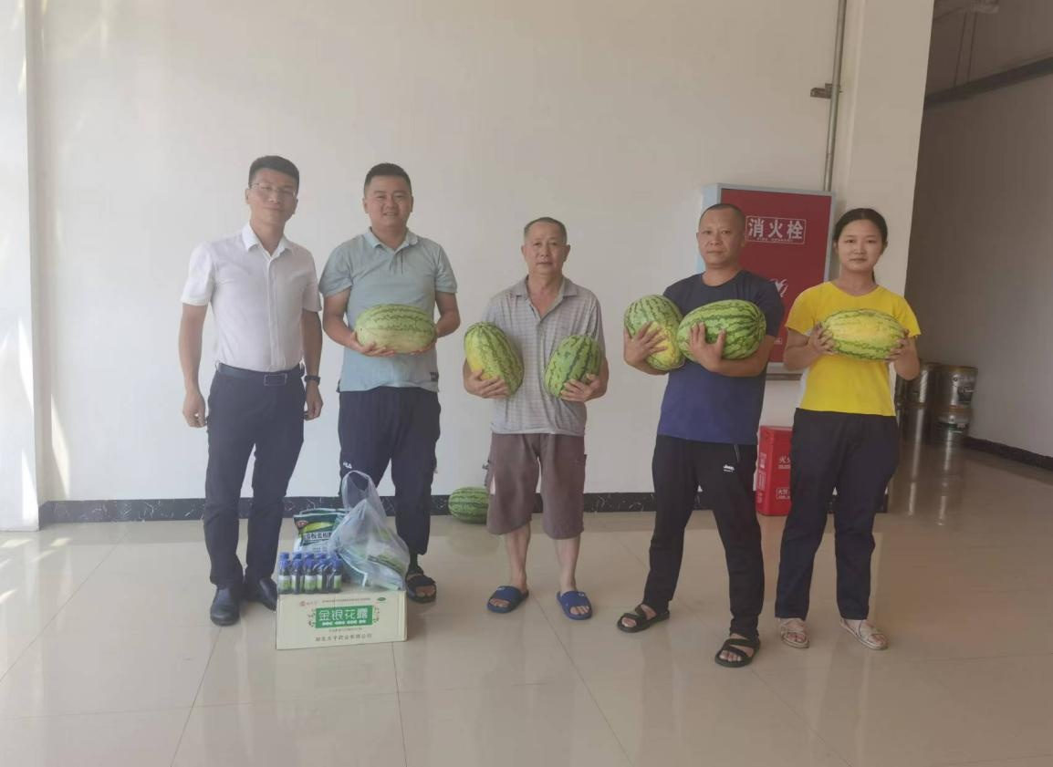 2022 年 8 月 19 日,為切實(shí)做好防暑降溫工作,城投公司副總經(jīng)理陳云峰帶隊(duì)慰問酷暑堅(jiān)守在一線的員工, 為奮戰(zhàn) 在一線的工作人員送上了西瓜、 藿香正氣口服液、 金銀花露等防暑物品, 最大限度減少了職工因高溫中暑造成的職業(yè)傷害, 保障了職工的安全與健康, 讓他們?cè)谑⑾牡目崾钪懈惺艿揭环萸鍥雠c關(guān)懷!