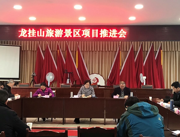 王亞容主任一行先查看了龍掛山項目游人接待點、植物園建設(shè)現(xiàn)場,對項目工作進度給予充分肯定,然后在法王寺鎮(zhèn)會議室組織召開了項目推進會。領(lǐng)導(dǎo)組聽取了阜陽集團總經(jīng)理任東財和阜陽集團副總經(jīng)理、符陽文旅公司董事長黃小林對項目建設(shè)情況的匯報及2019年工作安排,指出2019年是龍掛山項目建設(shè)的關(guān)鍵之年,各部門與符陽文旅公司要緊密配合,圍繞景區(qū)建設(shè)加快開展各項工作。王亞容主任強調(diào),符陽文旅公司要提高認(rèn)識,進一步細(xì)化工期,加快進度,全力推進項目建設(shè),助力合江縣“天府旅游名縣”創(chuàng)建工作。